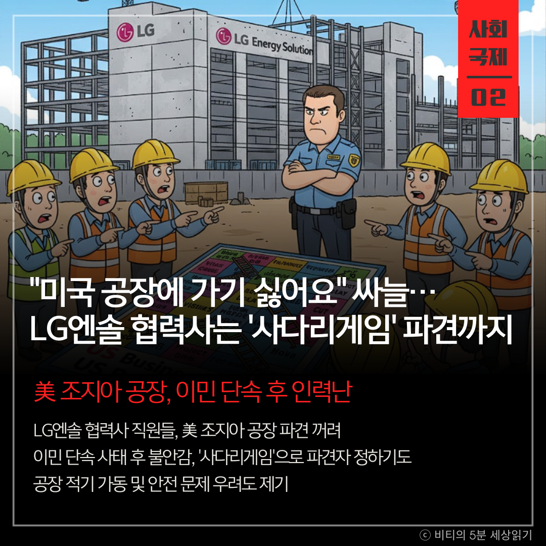 지난달 미국 조지아주 이민 당국 단속 사태 이후 LG에너지솔루션 및 협력사 직원들이 미국 출장을 꺼리는 분위기가 확산되면서, 현지 공장 건설 정상화에 난항이 예상된다. 일부 협력사는 '사다리게임'으로 파견자를 정하는 상황이며, 공장 적기 가동 및 안전 문제 우려도 제기되고 있다.