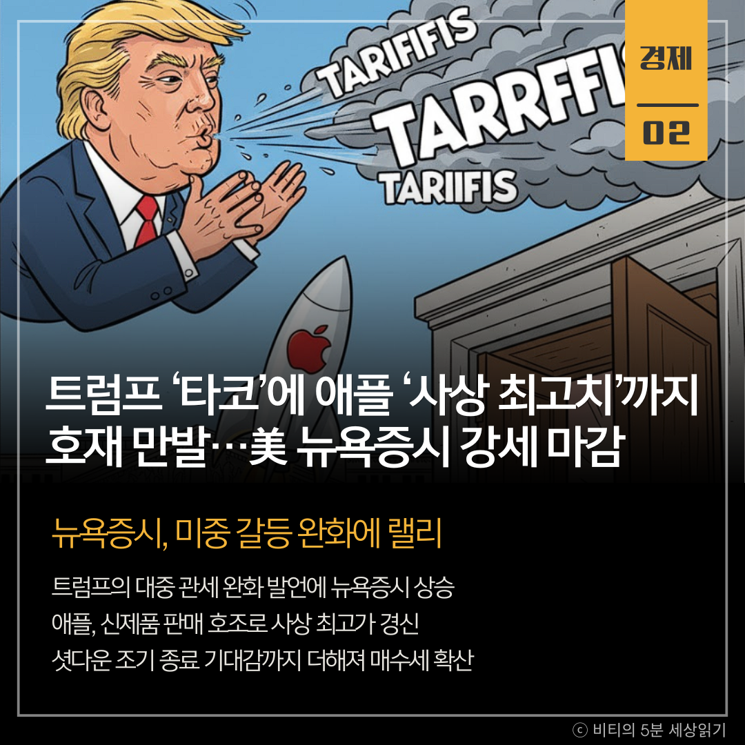 트럼프 ‘타코’에 애플 ‘사상 최고치’까지 호재 만발…美 뉴욕증시 강세 마감