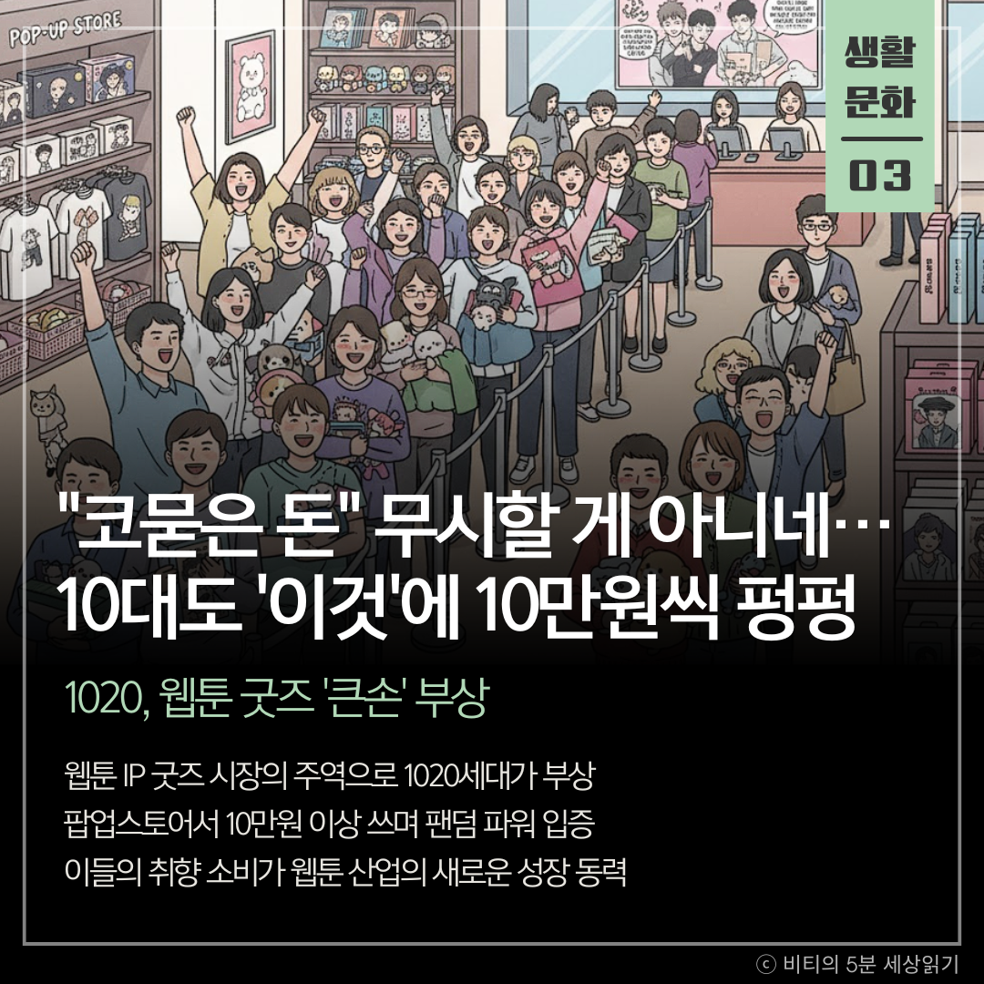 1020세대가 웹툰 IP 굿즈 시장의 '큰손'으로 떠올랐다. 이들의 강력한 팬덤 소비가 웹툰 산업의 가치를 확장하는 핵심 동력으로 작용하고 있다.