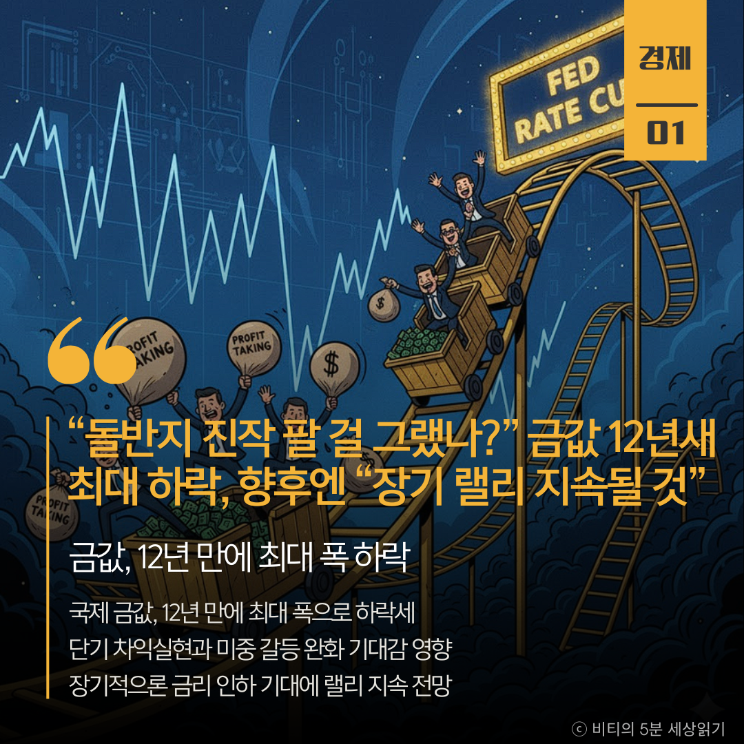 [25년 10월 23일(목)] “여보, 돌반지 진작 팔 걸 그랬나?”…금값 12년새 최대 하락, 향후엔 “장기 랠리 지속될 것” - 오늘 주요 뉴스 요약