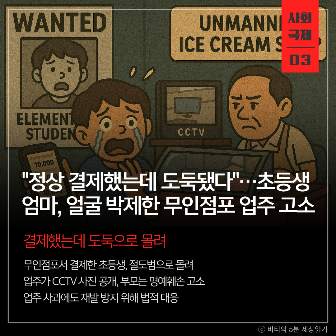 무인점포의 편리함 뒤에는 신중한 확인의 책임이 따릅니다. 성급한 판단이 한 아이를 공개적인 절도범으로 만들었습니다. 섣부른 공개가 얼마나 큰 상처를 남길 수 있는지 보여주는 사례입니다.