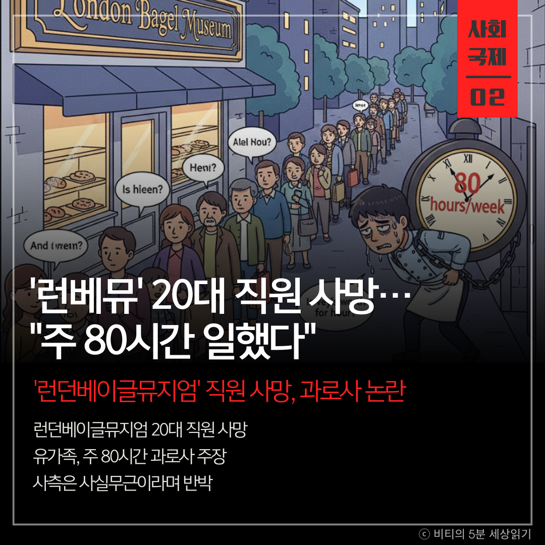 유명 빵집 '런던베이글뮤지엄'에서 일하던 20대 직원이 사망한 사건을 두고 유가족과 사측의 주장이 엇갈리고 있다. 유가족은 주 80시간의 초장시간 노동으로 인한 과로사를 주장하는 반면, 사측은 사실무근이라며 반박했다.