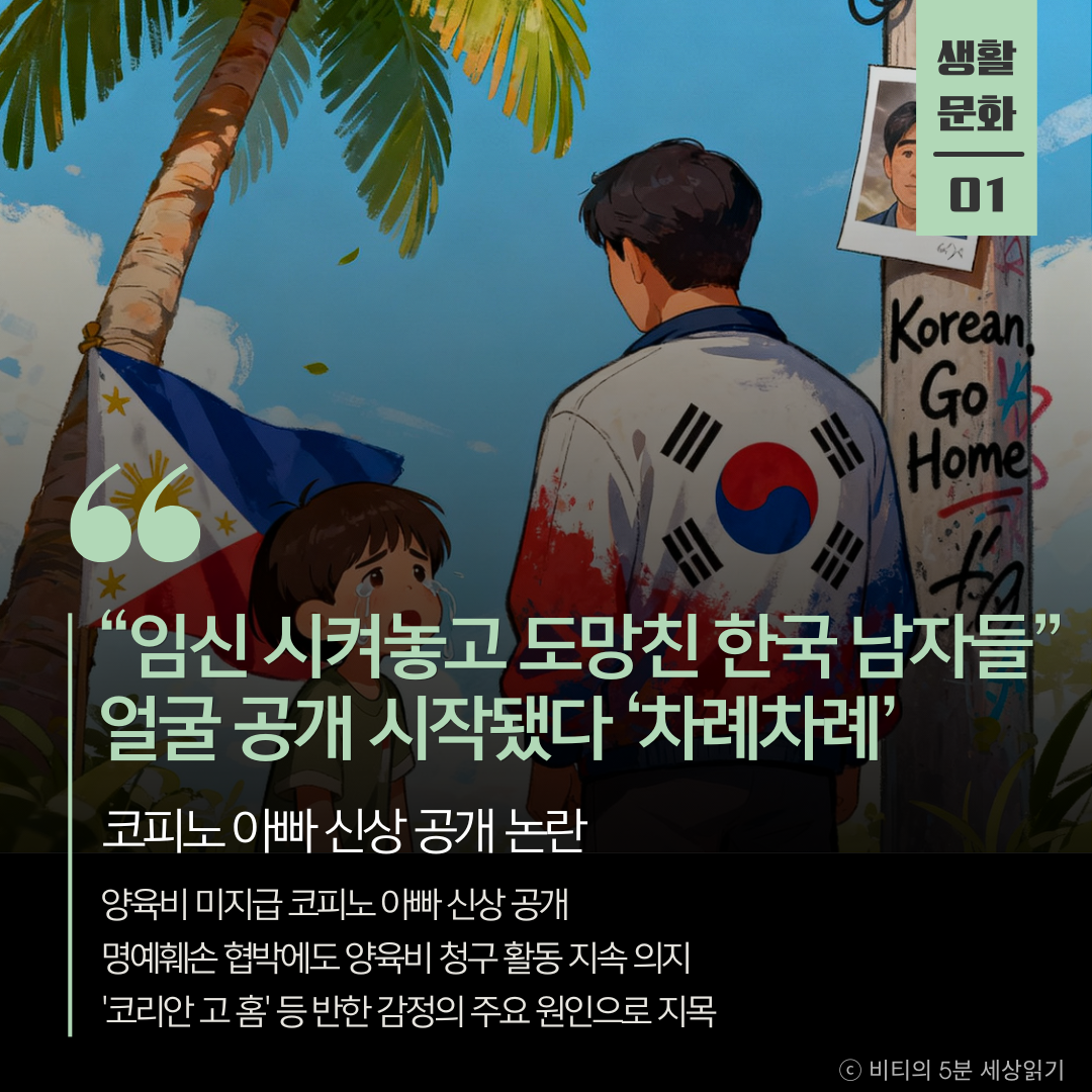 사적 제재라는 비판에도 불구하고, '잊힐 권리'보다 '부양받을 권리'가 우선이라는 절박한 외침입니다. 코피노 문제가 개인의 비극을 넘어 국가적 망신이 되지 않도록 제도적 해결책 모색이 시급합니다.