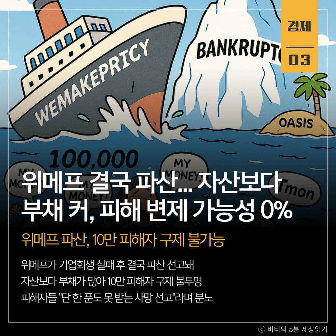 대규모 미정산 사태를 빚은 위메프가 M&A에 실패하며 파산했다. 10만 명의 피해자는 부채가 자산보다 많아 피해를 구제받기 어려울 전망이다.