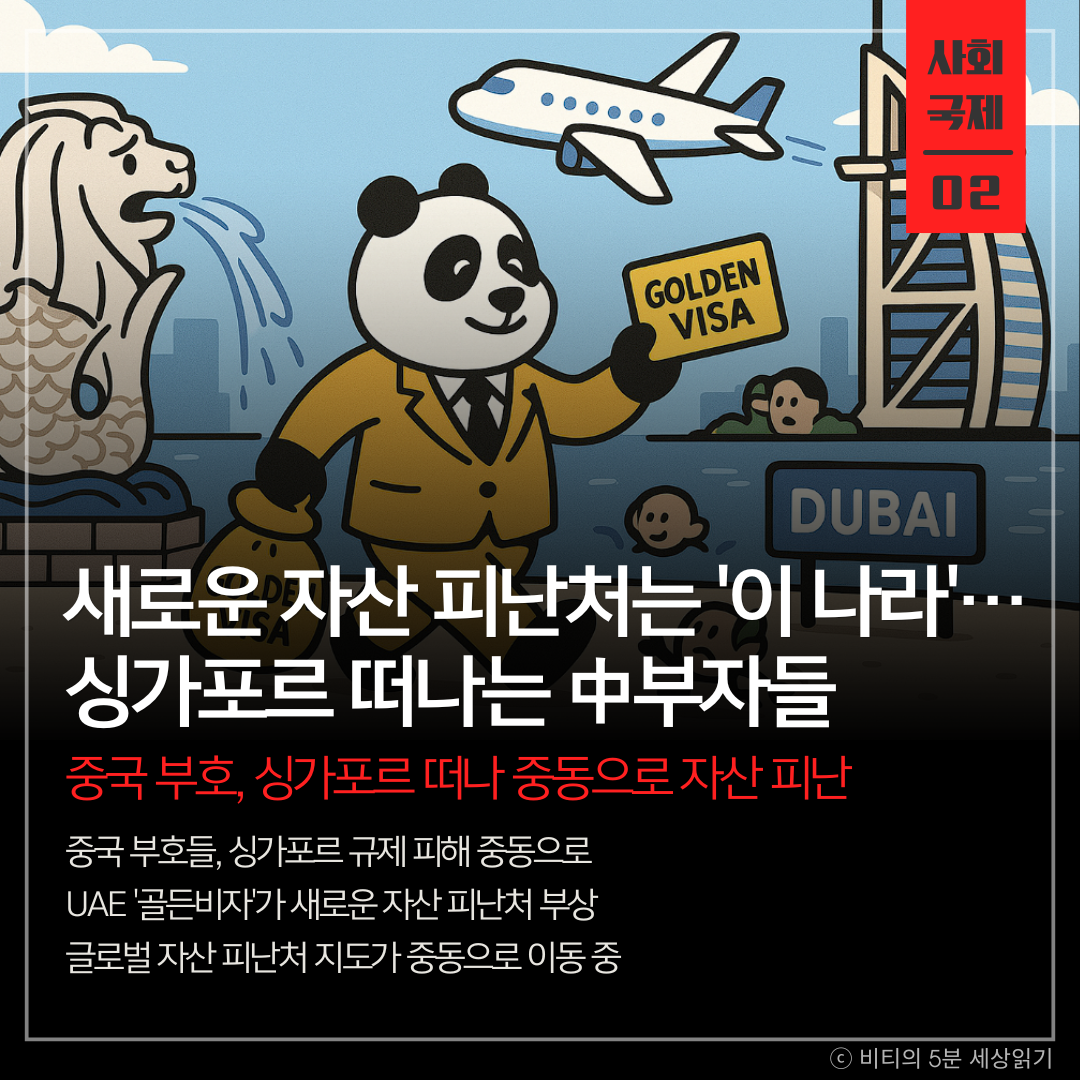 중국 부호들의 '엑소더스'는 단순히 부의 이전을 넘어, 글로벌 자산 피난처의 지도가 싱가포르에서 중동으로 바뀌고 있음을 보여줍니다. 규제가 느슨한 곳을 찾아 이동하는 자본의 속성이 드러나는 대목입니다.