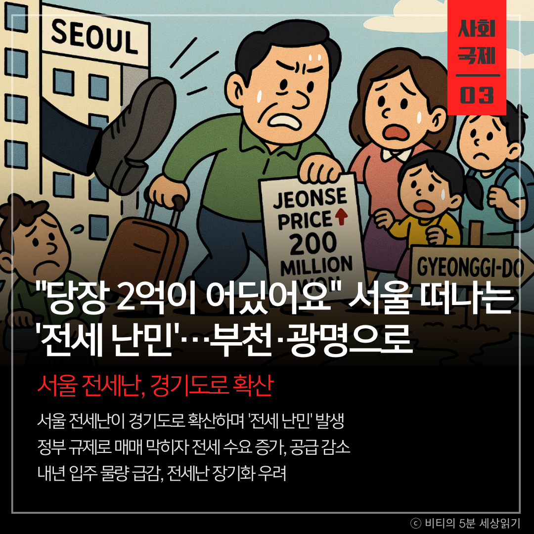 정부의 잇따른 부동산 규제로 서울 아파트 매매가 막히자 전세 수요가 급증, 전세 물량은 실종되며 '전세 난민'이 경기권으로 밀려나고 있다. 경기 지역 전세 매물도 급감하며 전세난이 장기화될 우려가 커지고 있다.