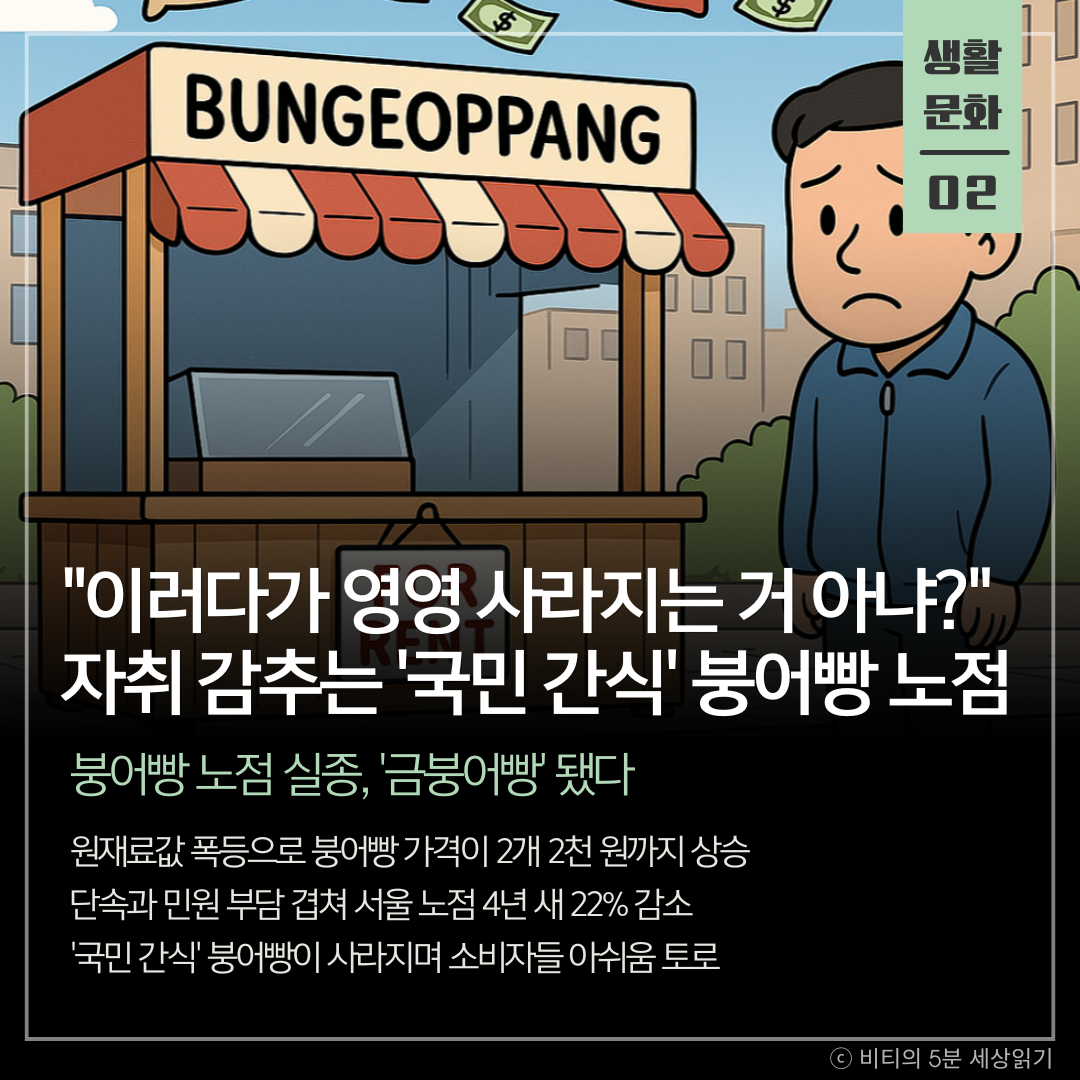길거리에서 흔히 볼 수 있었던 '국민 간식' 붕어빵이 사라지고 있습니다. 원재료 가격 상승과 단속·민원 부담이 겹치면서 노점상들이 영업을 포기하고 있기 때문입니다.