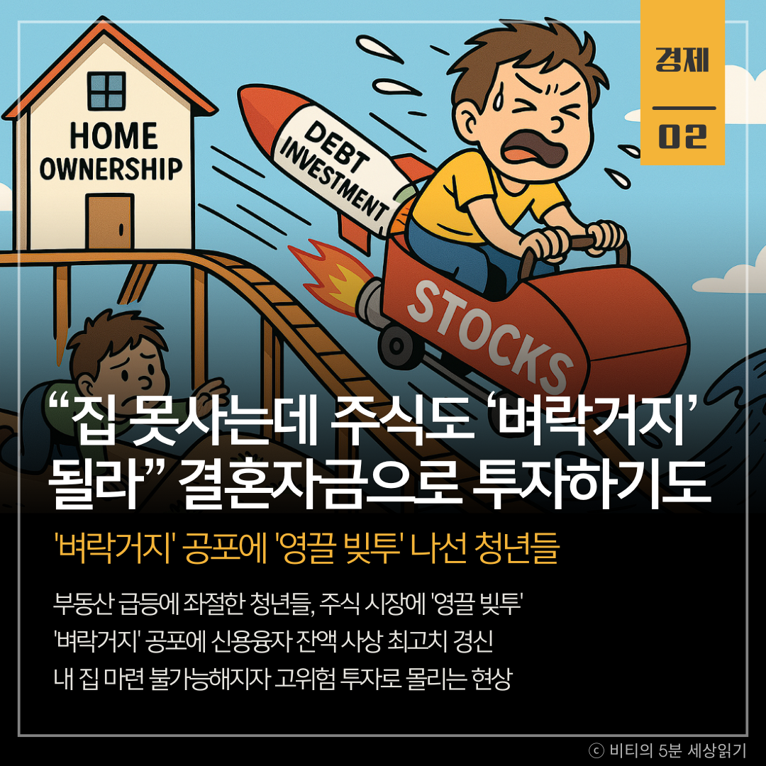 부동산 가격 급등으로 좌절감을 느낀 2030 청년들이 '벼락거지'가 될지 모른다는 불안감에 '영끌'로 주식 시장에 뛰어들고 있다. 내 집 마련의 꿈이 멀어지자, 고위험 자산에 투자해 단기간에 큰돈을 벌려는 '마지막 몸부림'이라는 분석이다.