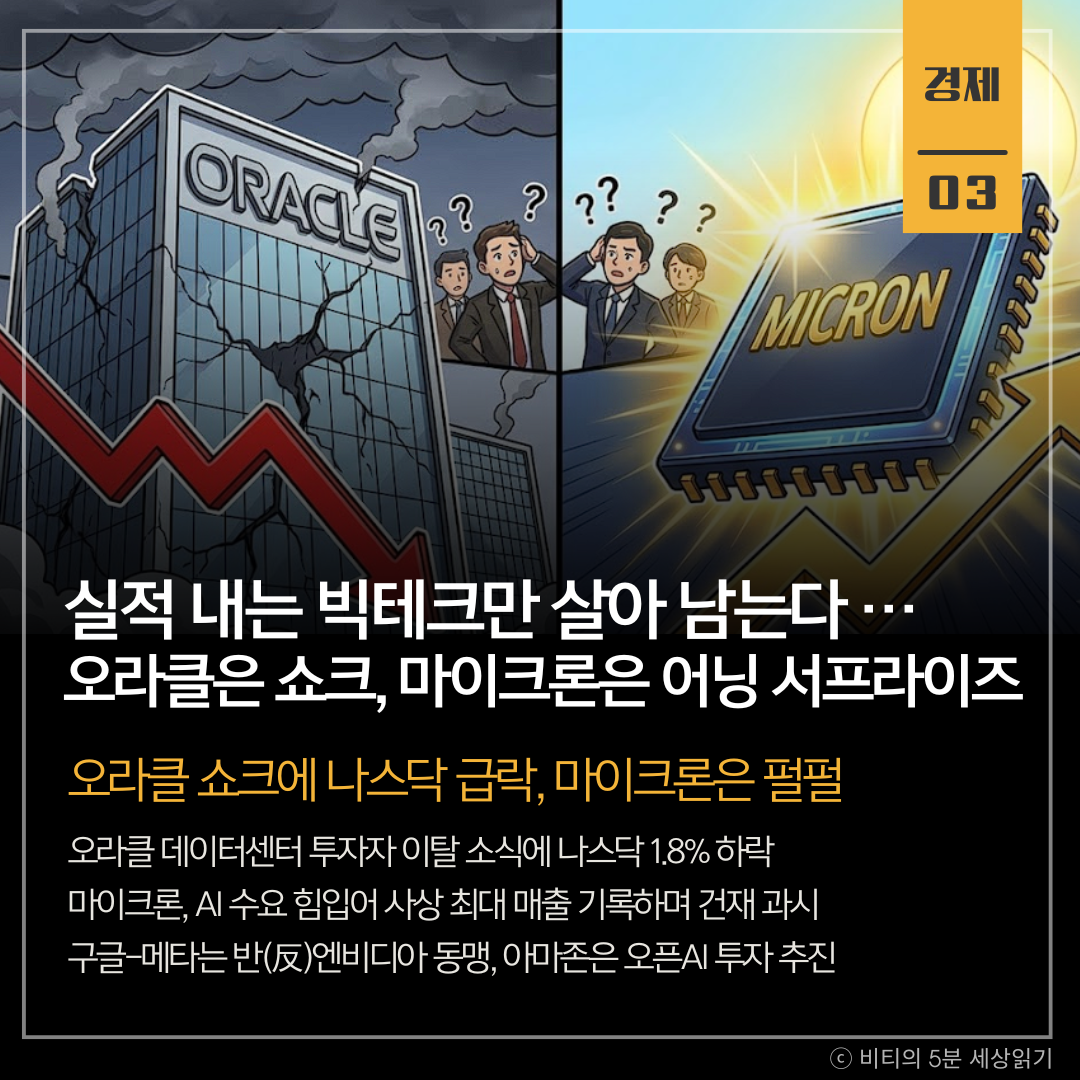 오라클은 쇼크, 마이크론은 어닝 서프라이즈…실적 내는 빅테크만 살아 남는다
