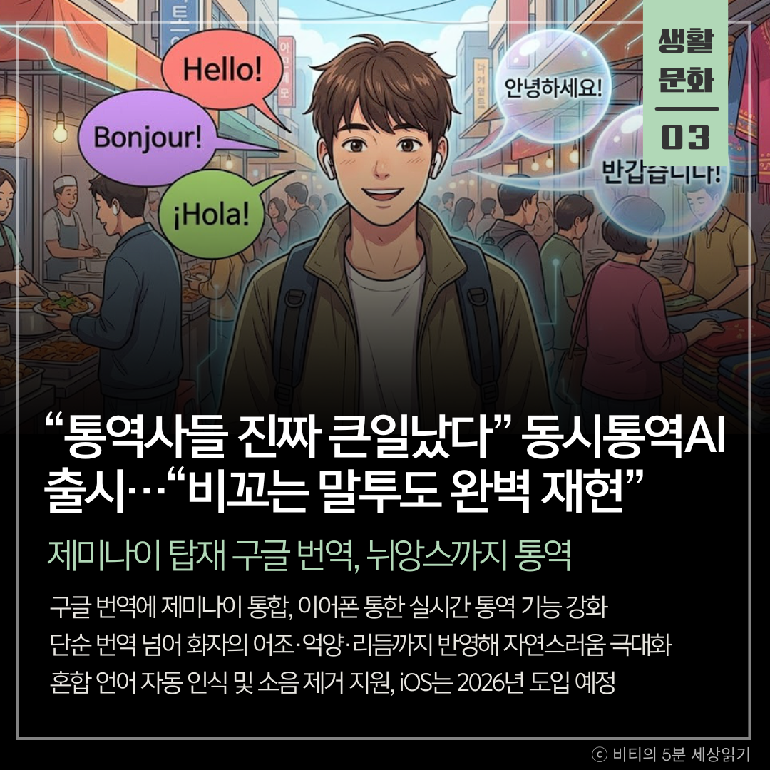 구글의 AI 모델 '제미나이'가 구글 번역 앱에 통합되면서 실시간 통역 기능이 획기적으로 진화했습니다. 단순 번역을 넘어 화자의 어조와 억양까지 살려내며, 이어폰만 있으면 '나만의 통역사'를 둔 것과 같은 경험을 제공합니다.