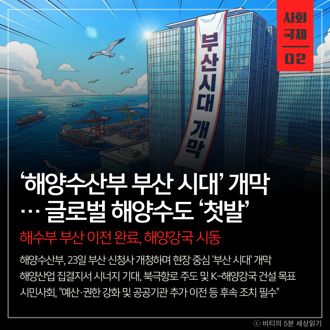 해양 산업 현장인 부산에 컨트롤타워가 자리 잡음으로써 정책과 현장의 시너지가 극대화될 것으로 기대됩니다. 다만, 시민사회와 업계는 이번 이전이 '미완의 완성'이 되지 않도록 강력한 후속 조치를 요구하고 있습니다.