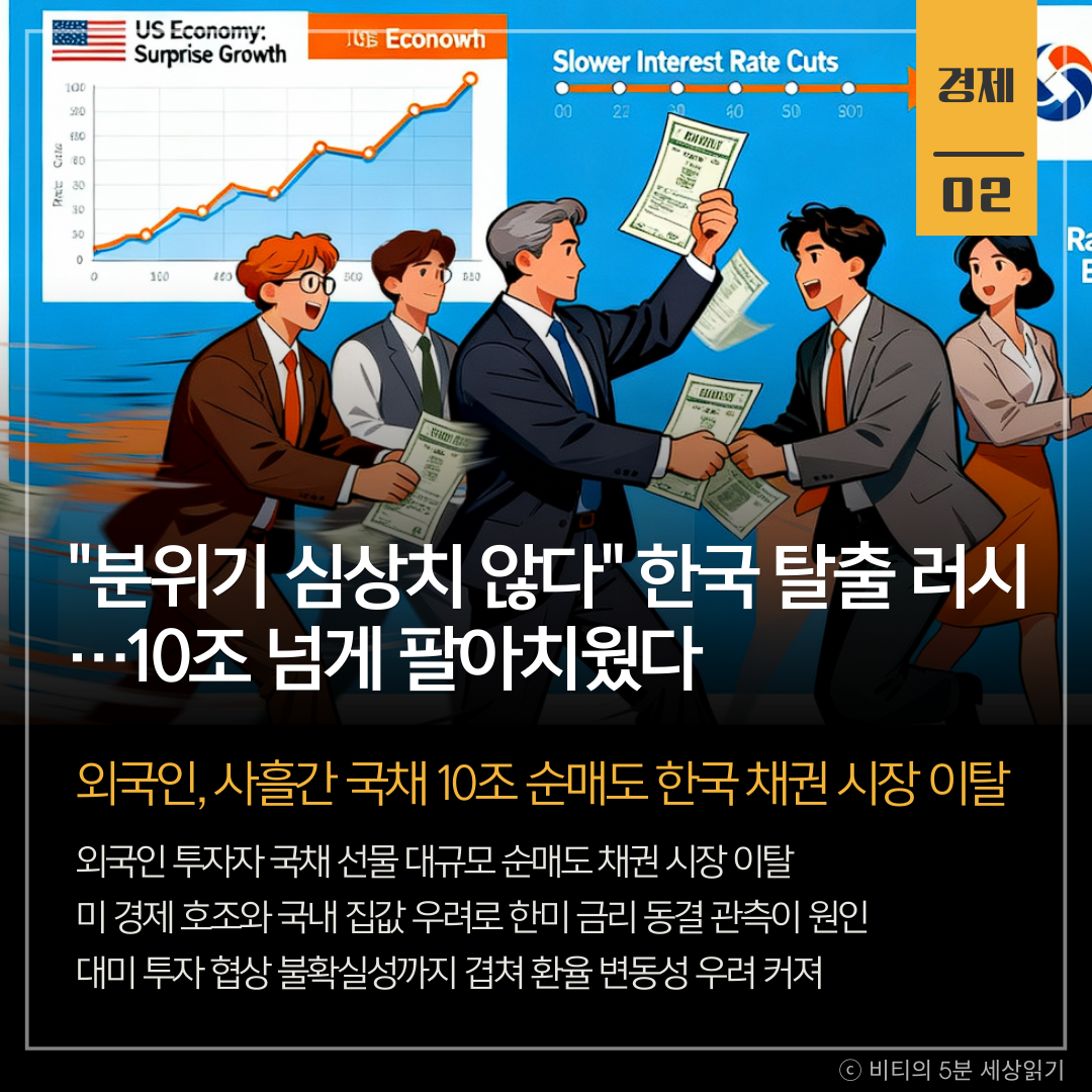 "분위기 심상치 않다" 한국 탈출 러시…10조 넘게 팔아치웠다 [김익환의 부처 핸즈업], "韓 집값·환율 심상찮네"…사흘새 국채 10兆 투매한 외국인