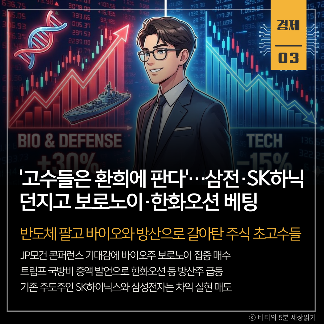 '고수들은 환희에 판다'…삼전·SK하닉 던지고 보로노이·한화오션 베팅
