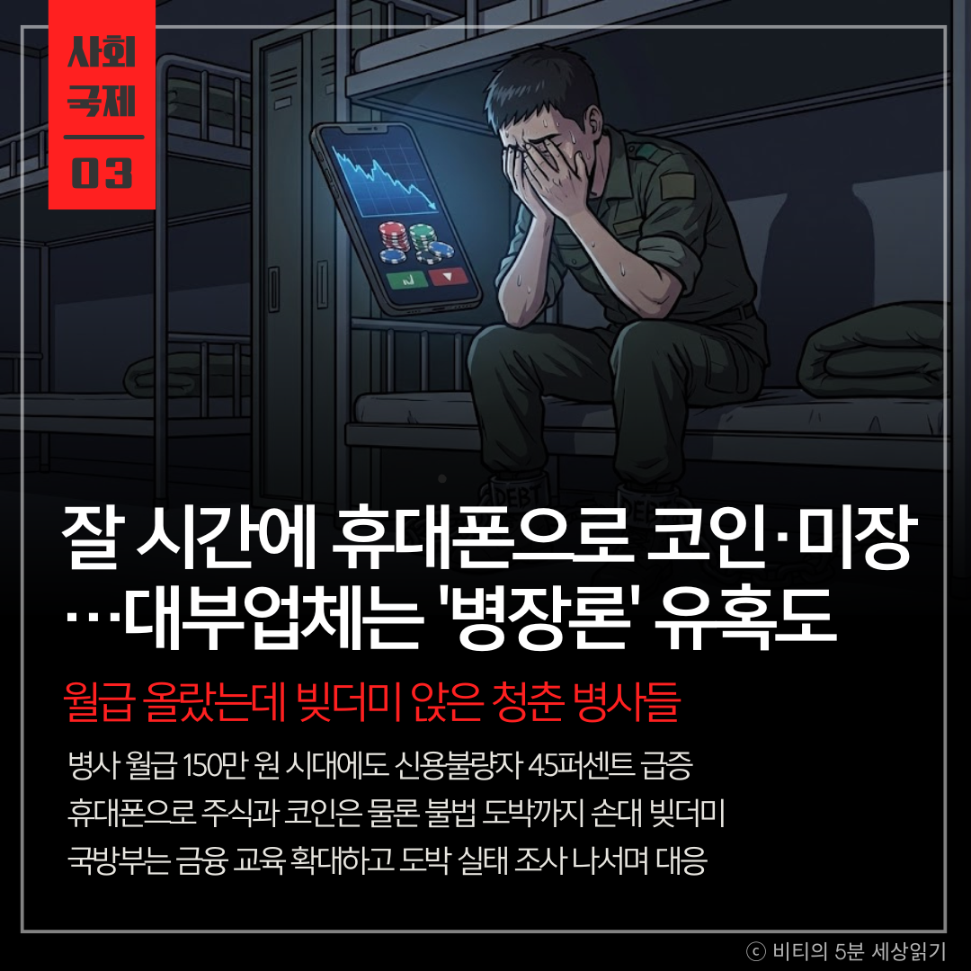 잘 시간에 휴대폰으로 코인·미장…대부업체는 '병장론' 유혹도
