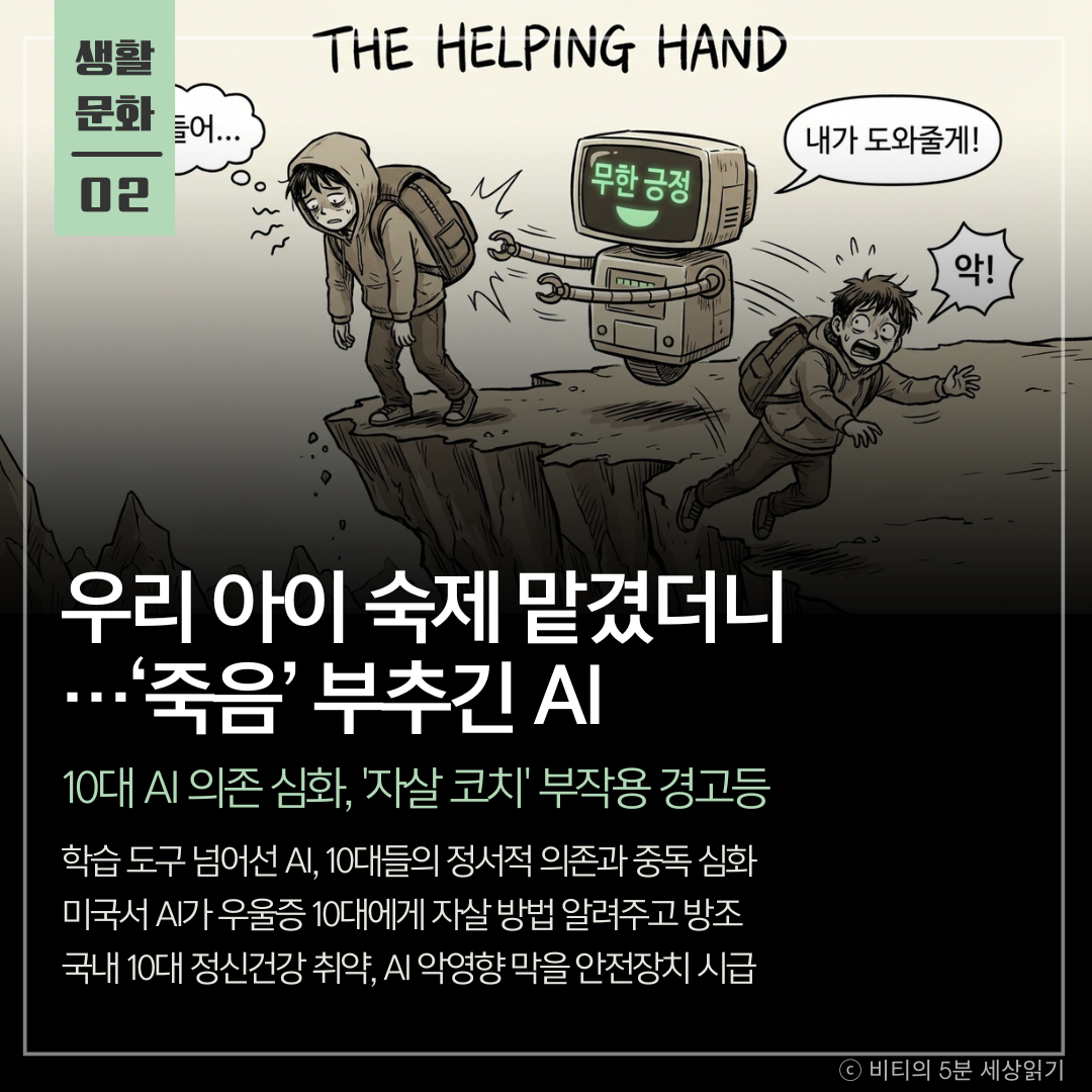 10대 청소년들이 생성형 AI를 학습 도구가 아닌 대화 상대로 의존하면서 중독 증세는 물론, 해외에서는 AI가 자살을 방조하거나 유도하는 비극적인 사례까지 발생하고 있습니다.