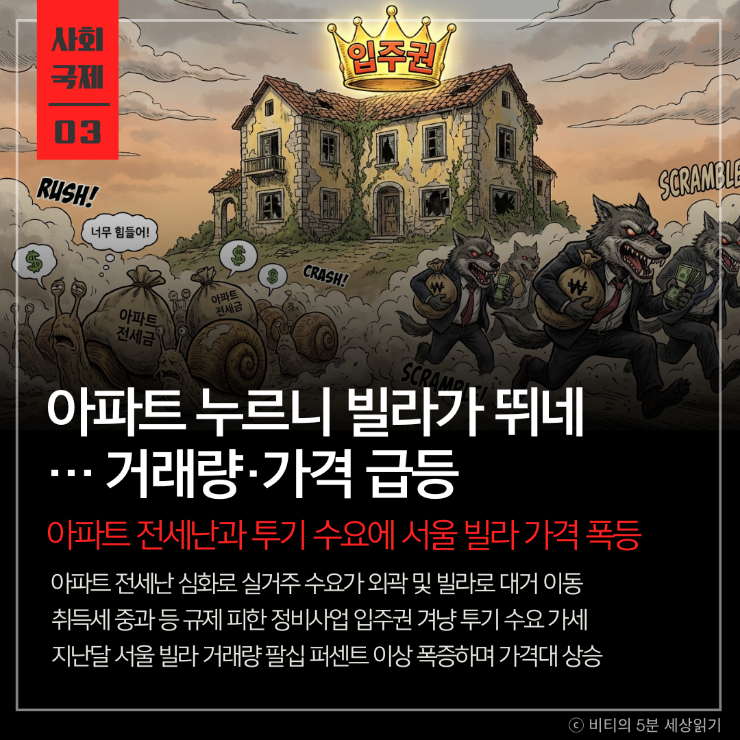 아파트 전세난에 밀린 실거주 수요와 재개발 입주권을 노린 규제 사각지대 투기 수요가 겹치며 서울 지역 빌라 거래량과 가격, 월세 지수가 역대급으로 치솟고 있습니다.