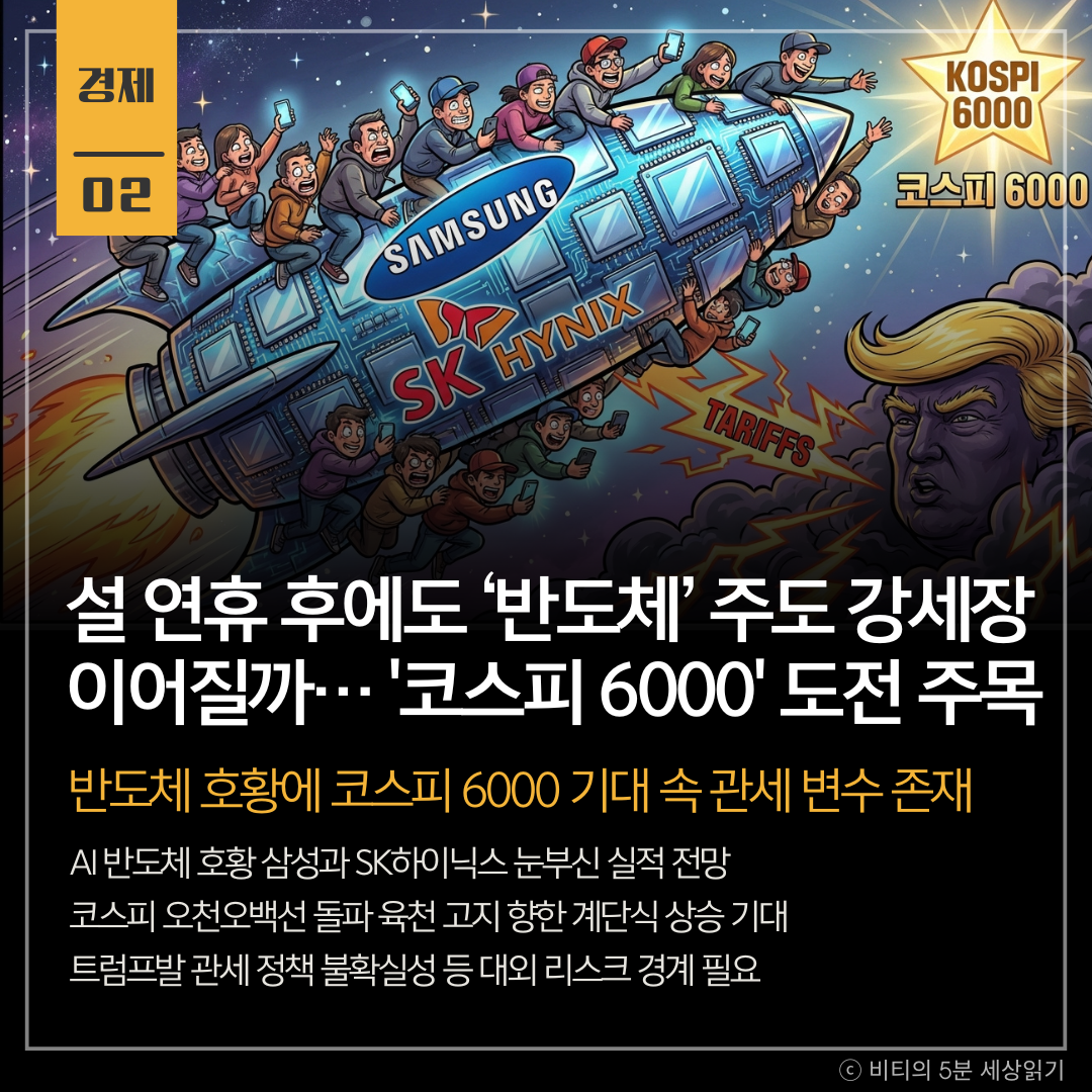 설 연휴 후에도 ‘반도체’ 주도 강세장 이어질까… '코스피 6000' 도전 주목 [증시 레이더]