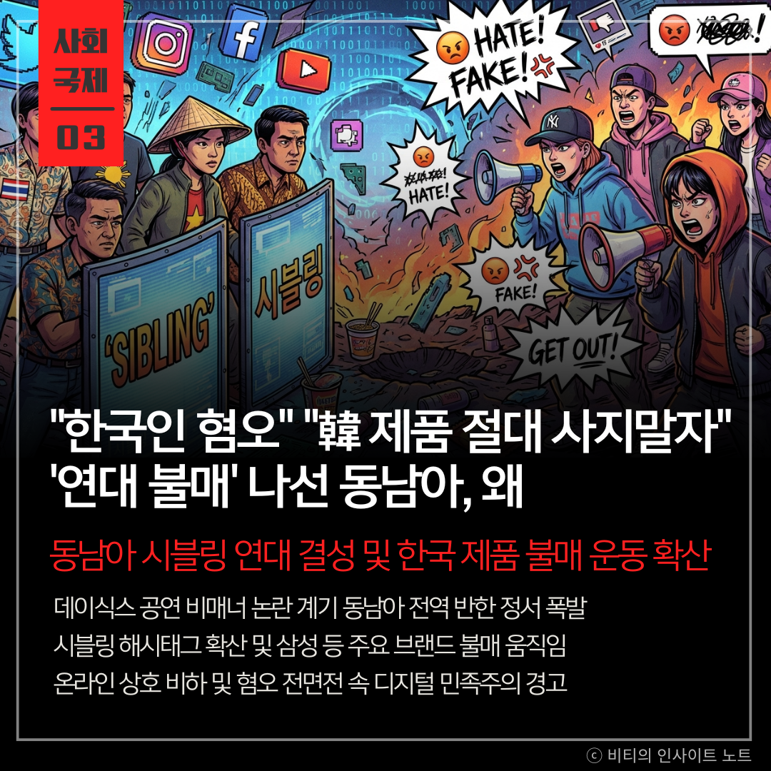 단순한 팬덤 다툼을 넘어선 지역 정체성 기반의 연대라는 점이 매우 위협적임 감정 섞인 인종차별적 대응은 불에 기름을 붓는 격이며 사태를 악화시킬 뿐임 동남아는 한류의 핵심 시장인 만큼 성숙한 시민 의식과 더불어 문화적 리스크를 세심하게 살피는 외교적 지혜가 어느 때보다 절실한 시점임