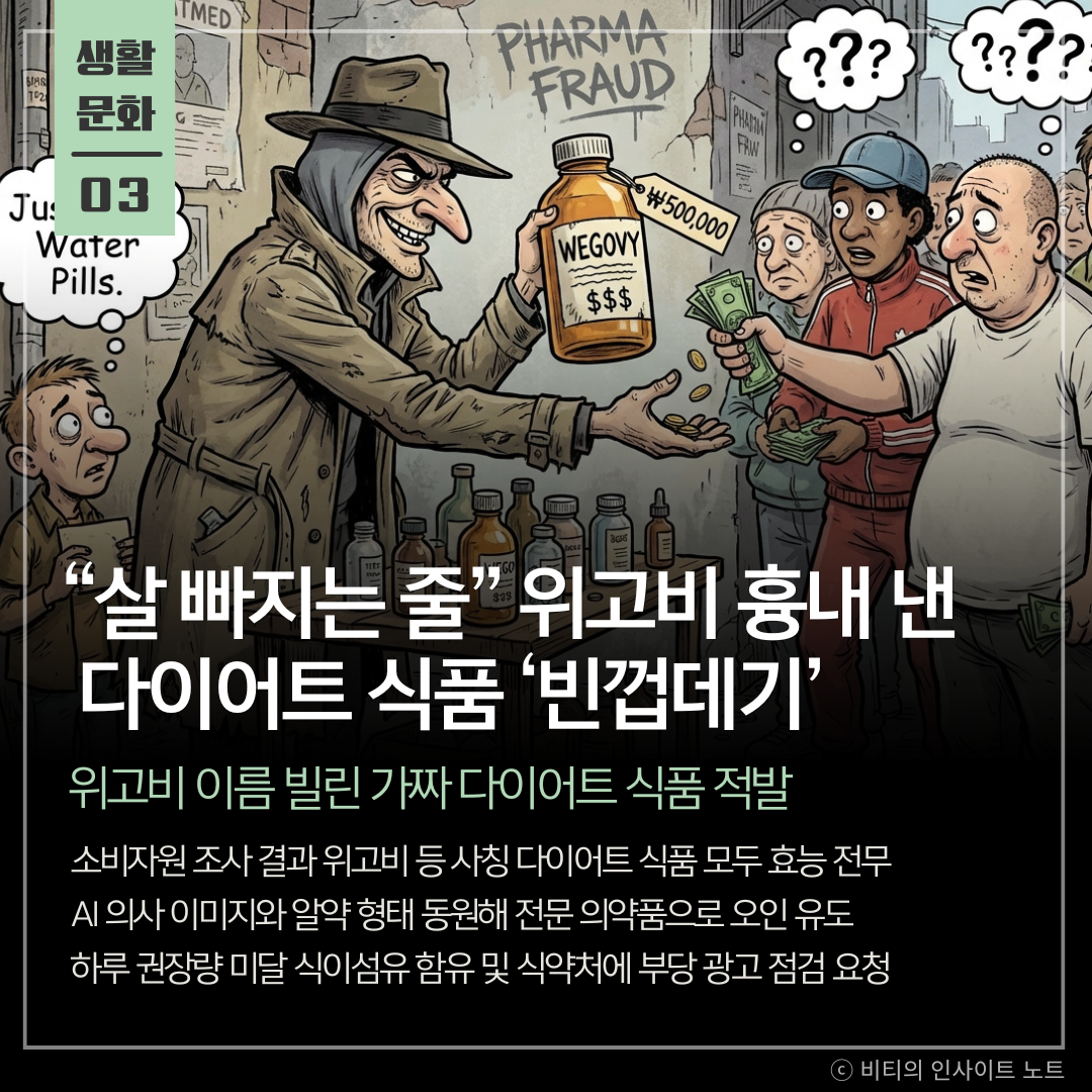 살 빼고 싶은 간절함을 이용해 AI 의사까지 동원하는 가짜의 기술이 실로 놀라움 세상에 마시는 위고비 같은 마법은 존재하지 않으며 알약 하나에 내 몸을 맡기기보다 식약처 인증 마크부터 확인하는 습관이 필수임 혁신의 탈을 쓴 기만 상술에 우리 주머니와 건강이 동시에 털리지 않도록 정부 차원의 강력한 단속이 시급한 시점임
