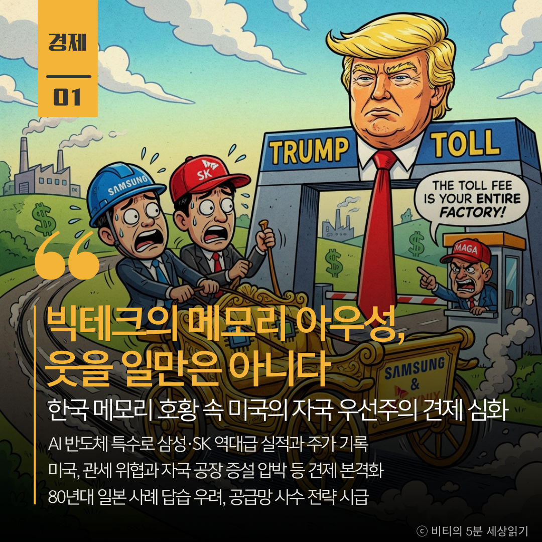 AI 열풍으로 삼성전자와 SK하이닉스가 역대급 호황을 맞았지만, 미국이 자국 중심 공급망 재편과 관세 압박을 강화하며 '제2의 플라자 합의' 우려가 커지고 있습니다.