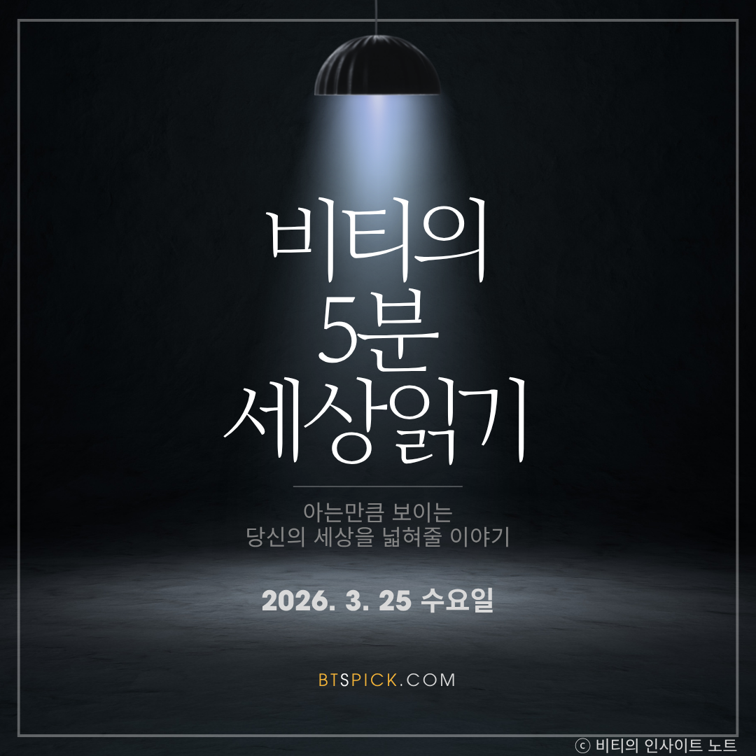 아는 만큼 보이는, 당신의 세상을 넓혀줄 이야기 '비티의 5분 세상읽기'가 오늘 하루를 시작하는 당신에게 꼭 필요한 지식을 전합니다.
