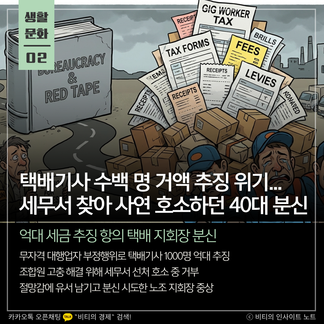 택배기사 수백 명 거액 추징 위기.. 세무서 찾아 사연 호소하던 40대 분신