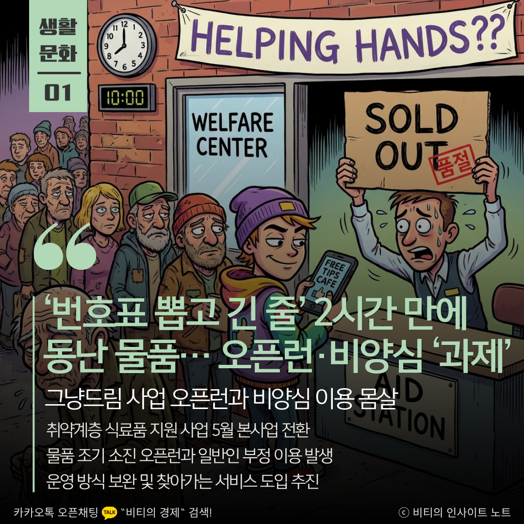 절차보다 가까운 빵 한 조각을 지향하는 이 사업의 취지는 따뜻하지만, 비양심적인 체리피킹이 배고픈 이들의 몫을 가로채는 상황은 씁쓸합니다. 제도의 허점을 메우는 기술적 보완과 함께 공동체를 위한 성숙한 시민 의식이 절실한 시점입니다.