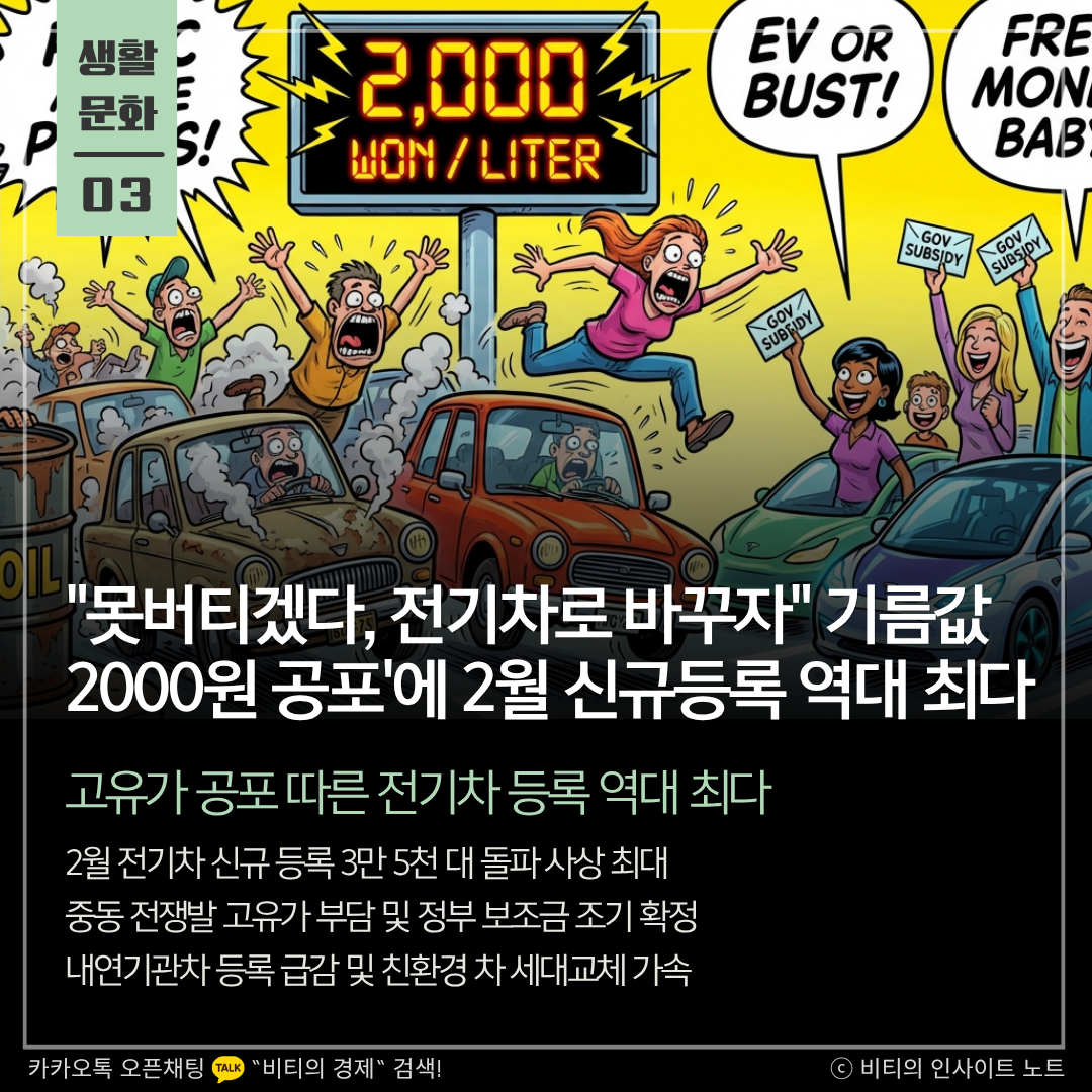 "못버티겠다, 전기차로 바꾸자" 기름값 2000원 공포'에 2월 신규등록 역대 최다
