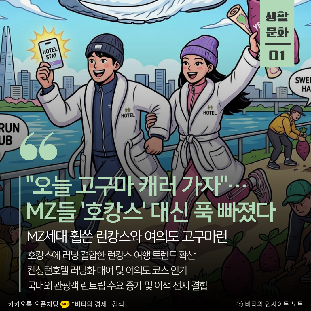 건강과 경험을 중시하는 MZ세대의 가치관이 여행 문화에도 깊게 녹아든 결과입니다. 단순한 투숙을 넘어 지역의 특색 있는 코스와 브랜드를 연결한 감각적인 기획이 돋보입니다. 런캉스는 자기 관리를 즐거움으로 승화시키는 헬시 플레저 트렌드가 오프라인 공간과 결합하여 진화된 형태라고 볼 수 있습니다. 그나저나 켄싱턴 호텔이랑 뉴발란스가 띄운 광고기사같은 느낌이...?ㅎㅎ