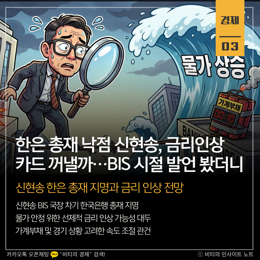 차기 한국은행 총재로 지명된 신현송 BIS 국장이 인플레이션에 대한 선제적 대응을 강조해온 만큼 시장의 금리 인상 기대감이 커지고 있습니다. 글로벌 투자은행들은 중동 리스크와 물가 압력을 고려해 이르면 5월부터 금리가 오를 가능성을 제기하고 있습니다.