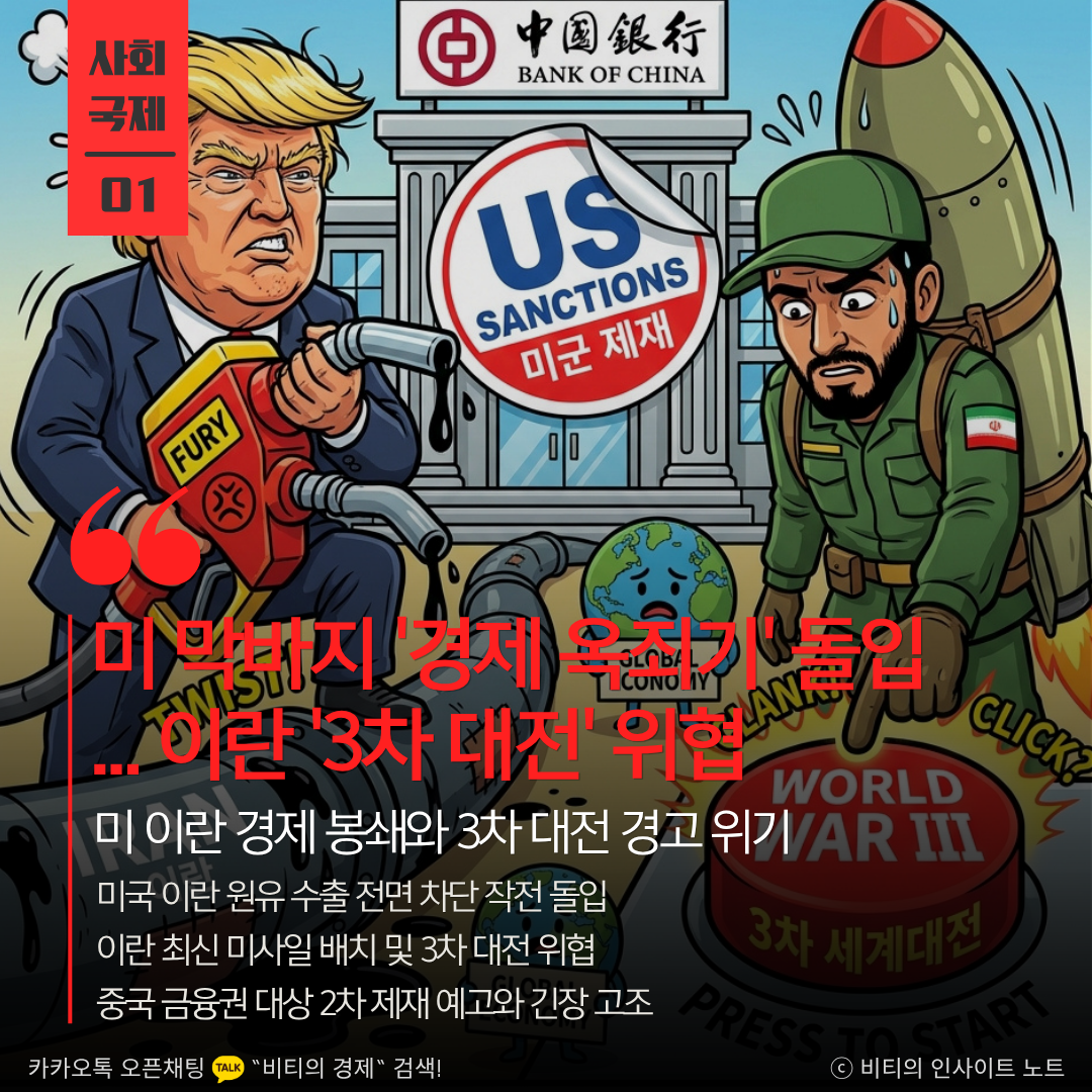 경제적 봉쇄라는 창과 군사적 위협이라는 방패가 정면으로 충돌하는 위태로운 국면입니다. 특히 중국을 향한 2차 제재 예고는 이번 사태가 단순한 지역 분쟁을 넘어 글로벌 공급망 전체를 흔드는 패권 전쟁으로 확산될 수 있음을 시사합니다. 우발적 충돌이 돌이킬 수 없는 전면전으로 번지지 않기를 바랄 뿐입니다.
