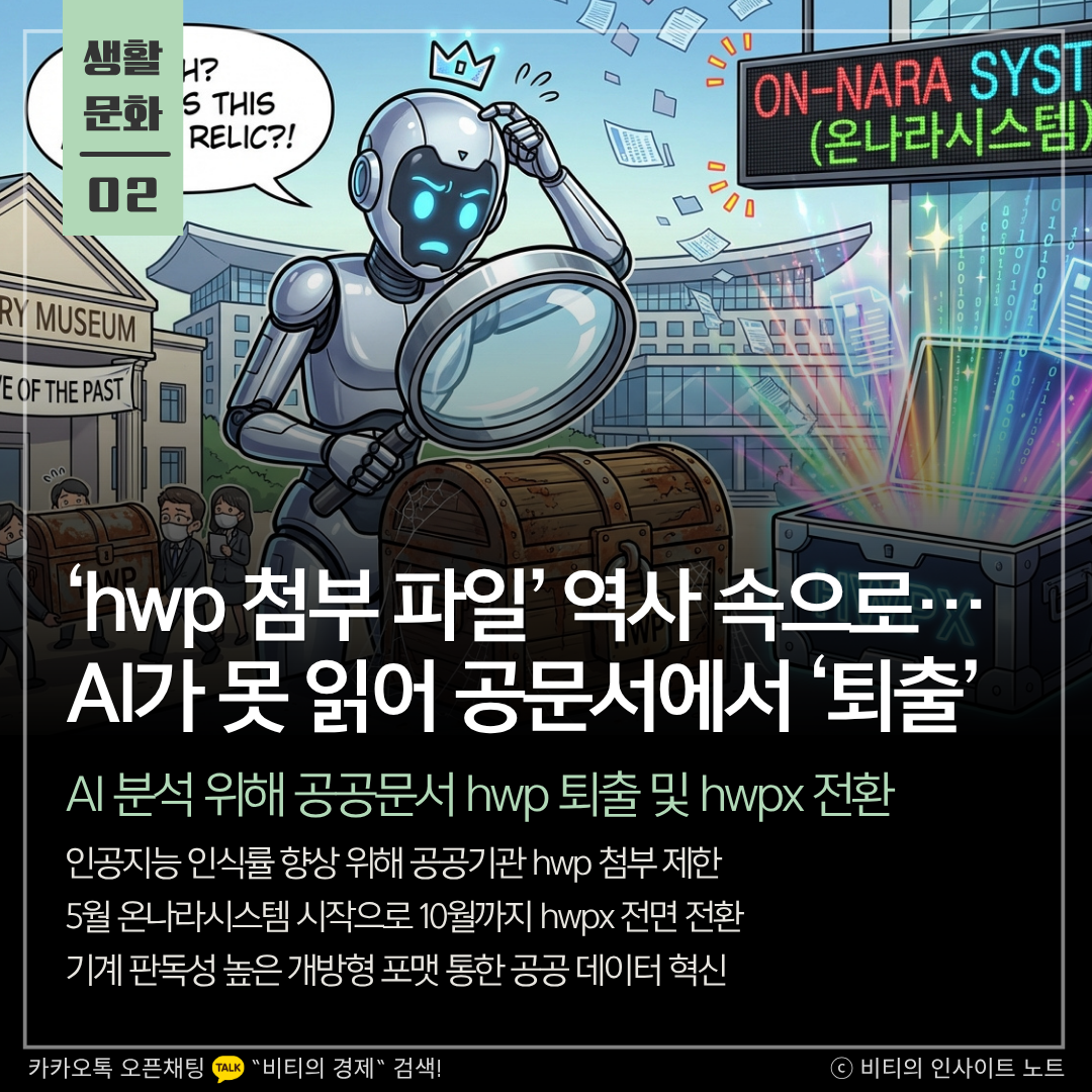 공공 부문에서 인공지능 분석이 어려운 hwp 파일 형식이 점차 사라지게 됩니다. 대신 인공지능의 기계 판독성이 높은 개방형 포맷인 hwpx로의 전환이 본격적으로 추진되며, 온나라시스템과 공직자 통합메일 등 공무원 소통 채널에서 hwp 첨부가 제한될 예정입니다.