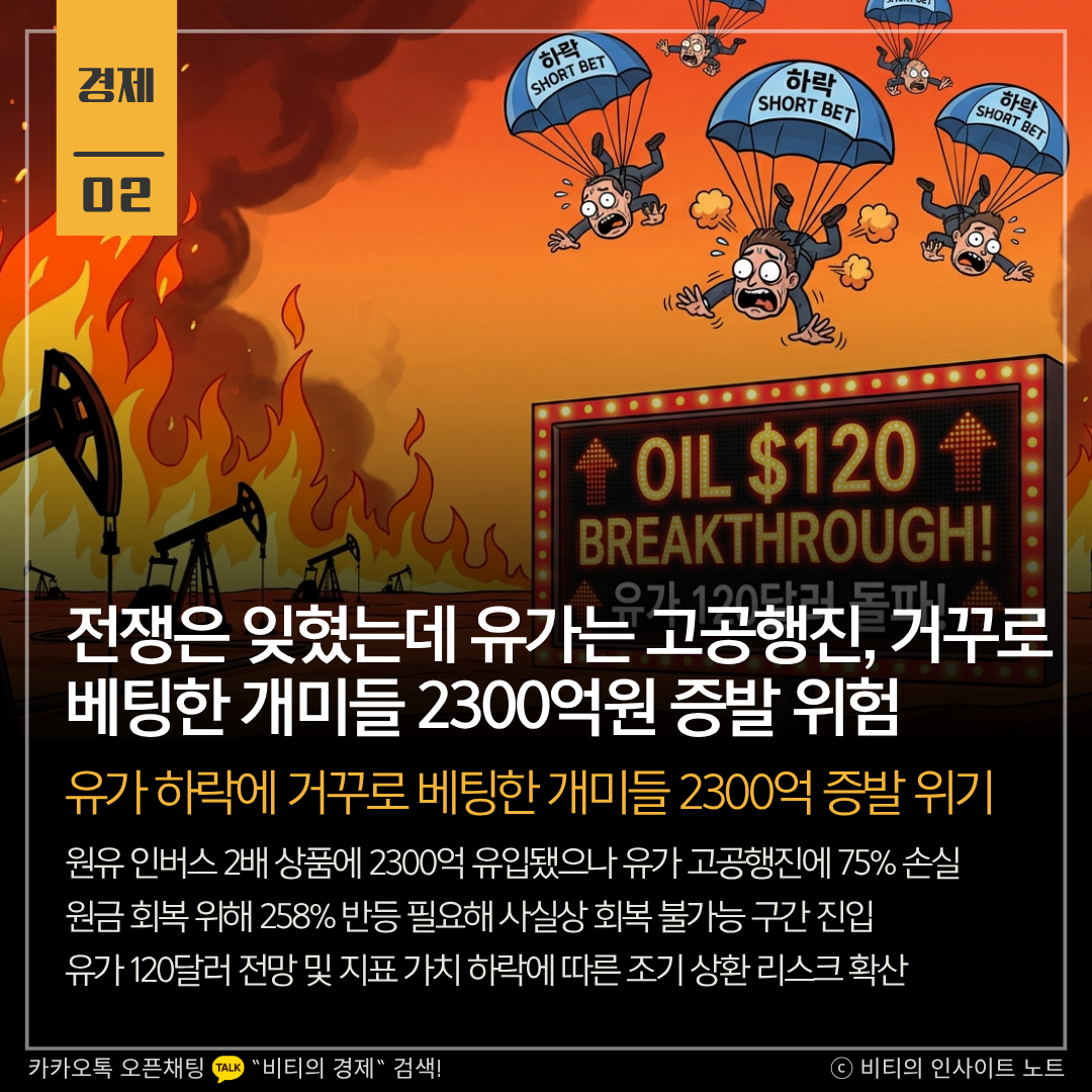 전쟁은 잊혔는데 유가는 고공행진, 거꾸로 베팅한 개미들 2300억원 증발 위험